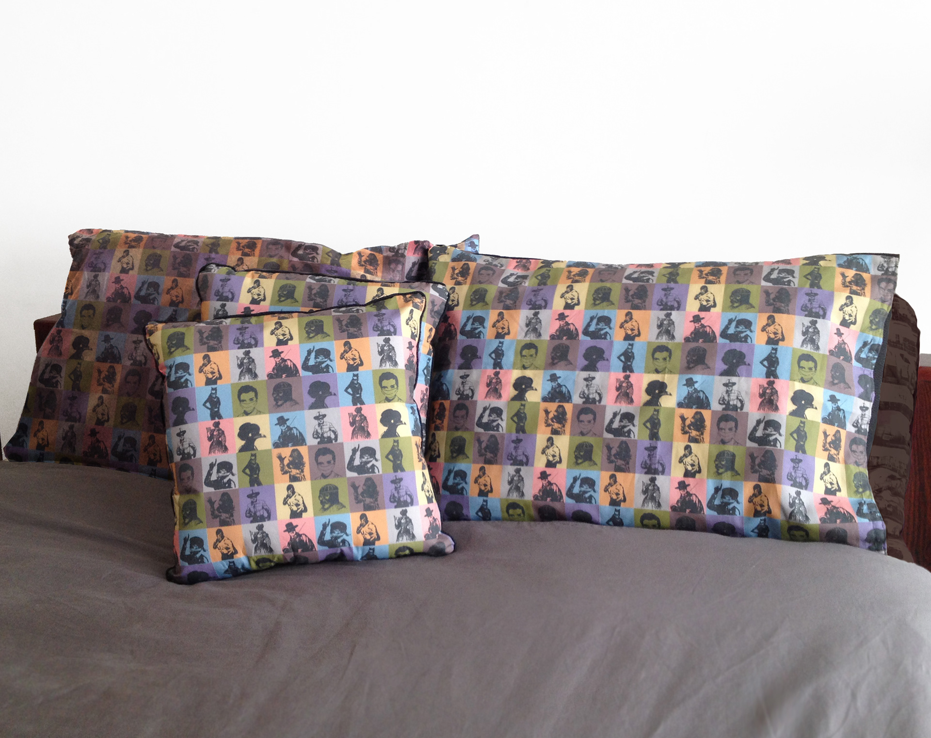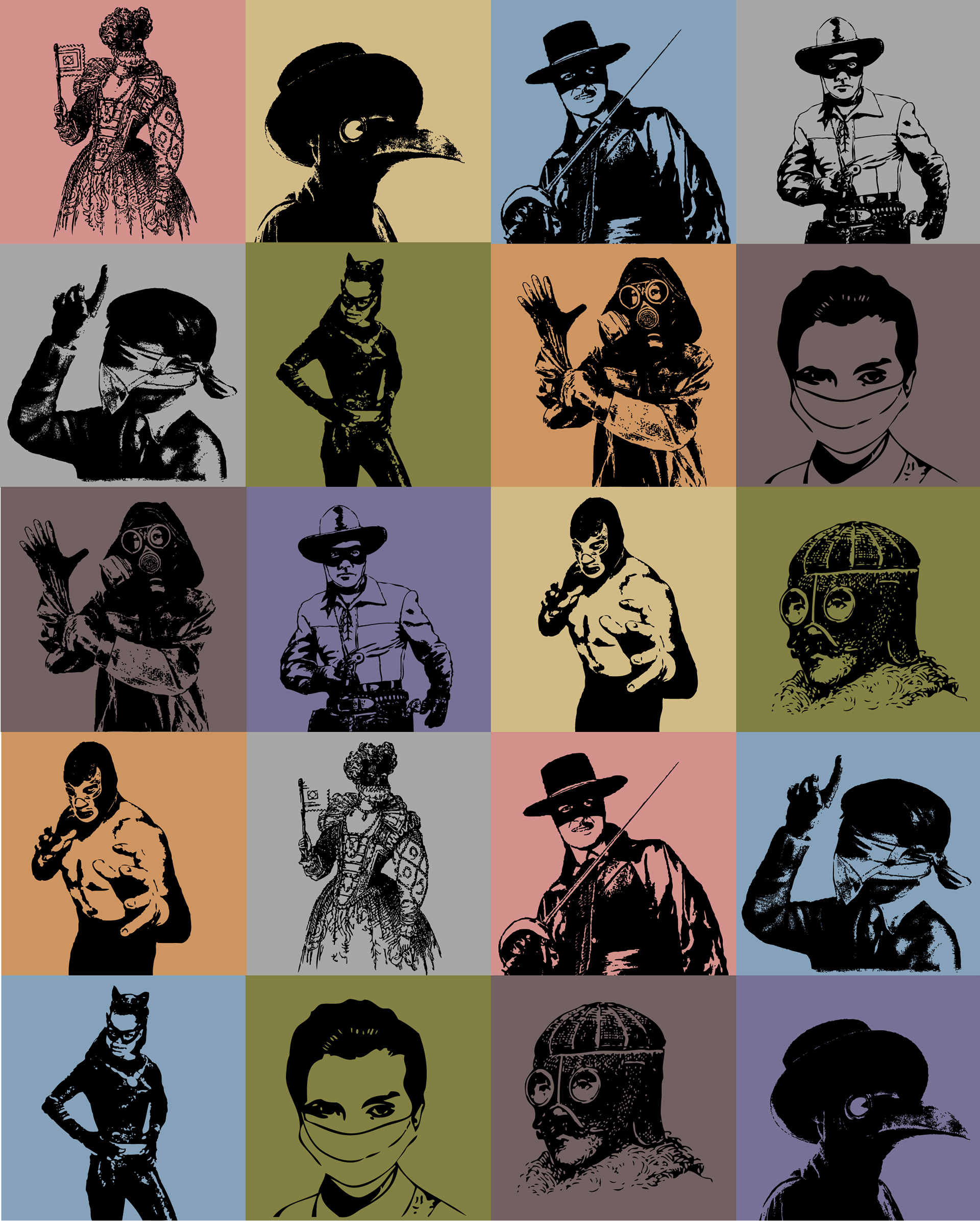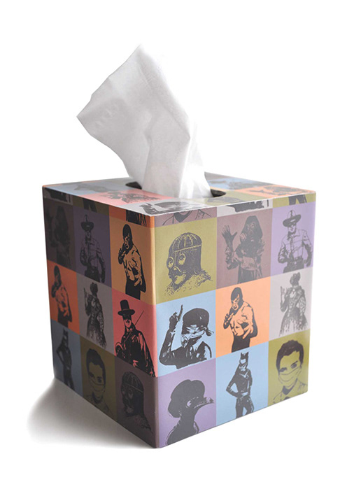 I designed this pattern based on a mask tile series I had started a while ago. I used Spoonflower to have gift wrap and fabric digitally printed. I made a pillowcase and tissue box with this design.