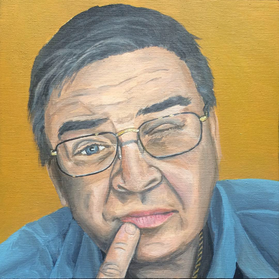 This was part of my 2017 personal challenge. I painted portraits of my immediate family members. This is a pose constructed from two different photos of my father. I call it his 'Dr. Evil' painting.