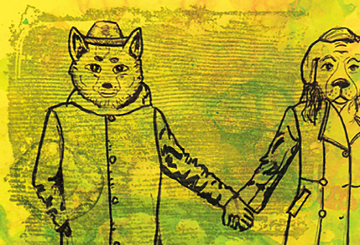 Is it Halloween yet? This quick rendering is meant to represent love and friendship. It depicts a couple wearing masks of a fox and a dog while holding hands.