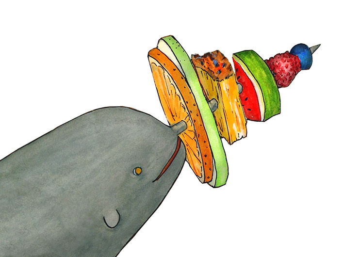 This watercolor narwhal illustration was part of my 2012 Sketchbook Project called "Let There Be Fruit."