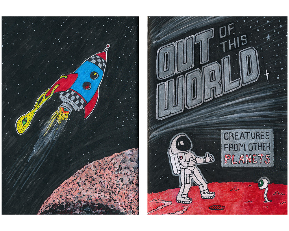 With this sketchbook project, I chose to limit myself to markers. Using nature as my inspiration, I created different alien type characters and described their attributes.