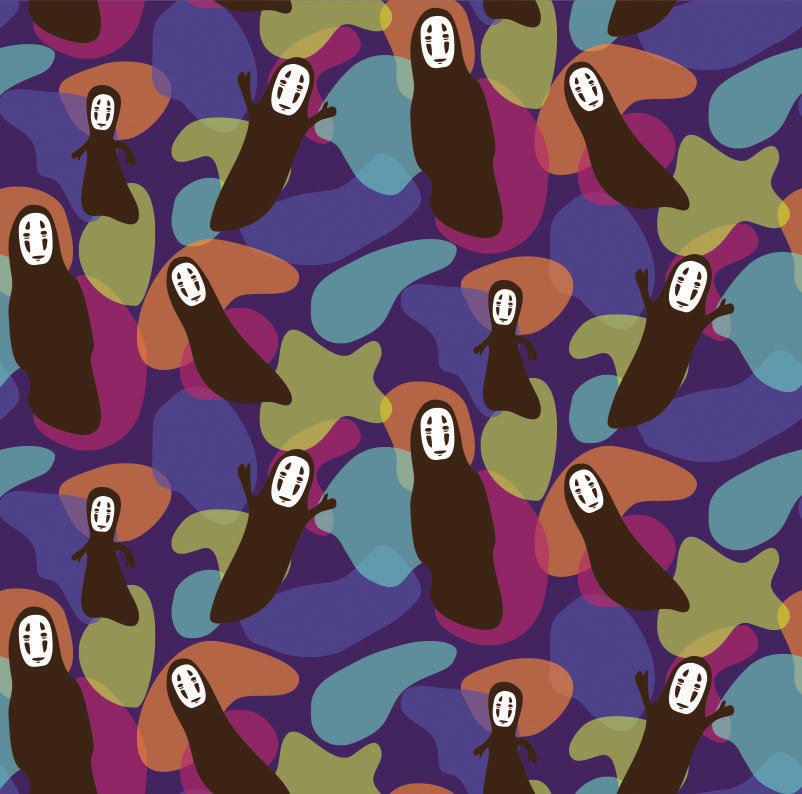 This pattern was created in homage to my favorite Hayao Miyazaki film 'Spirited Away' and features the No-Face Kaonashi spirit that devours everything.
