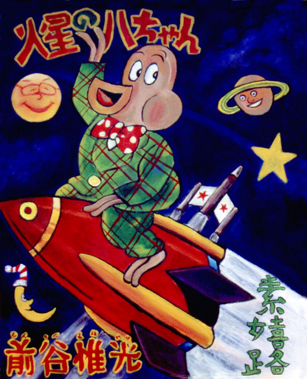 I must confess that I found this image somewhere and re-interpreted it in acrylic for my personal enjoyment. I don't have a clue what the writing says, but I found the graphics amusing.