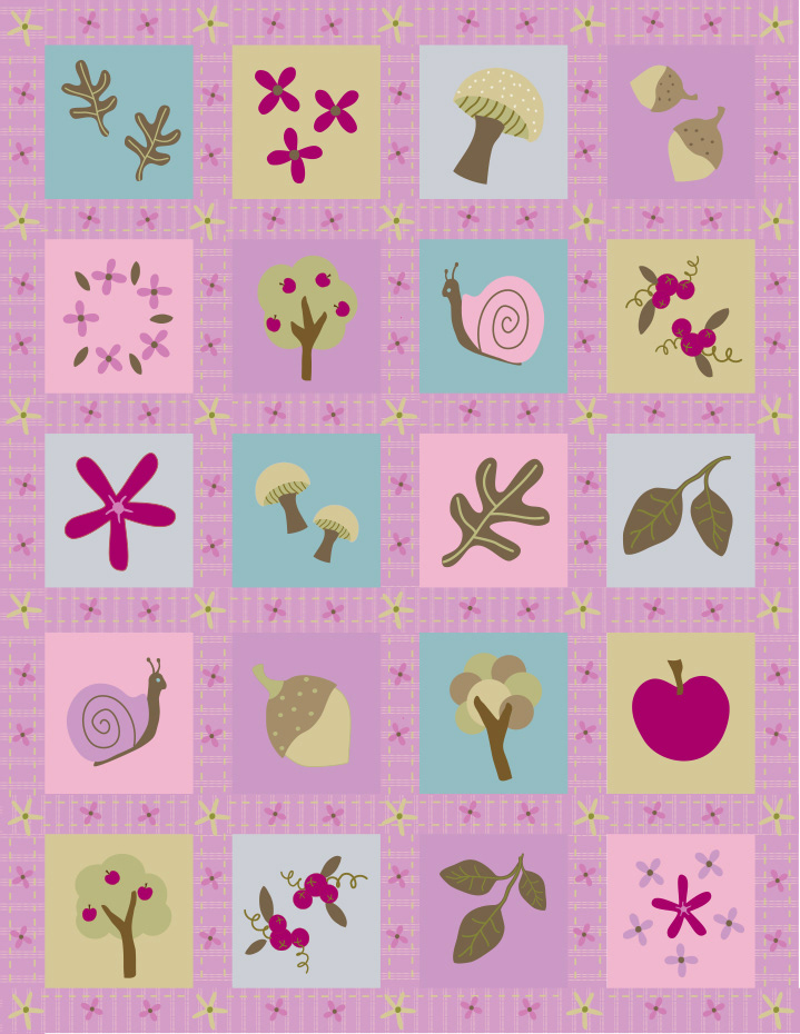 This was a kids quilt I designed for Target using a woodlands theme for tween girls.